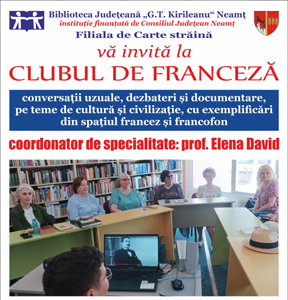 Biblioteca Județeană „G.T. Kirileanu“ Neamț continuă seria întâlnirilor din cadrul Clubului de franceză, în parteneriat cu prof. Elena David, coordonator de specialitate, începând din data de 17 septembrie 2025.